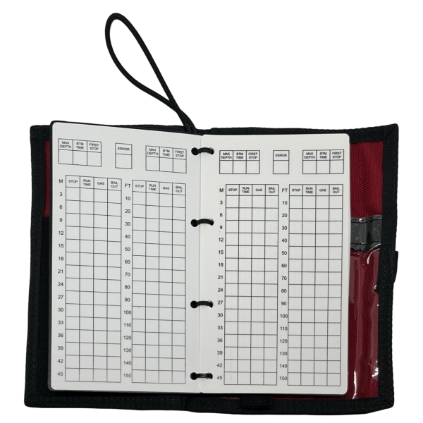Auf der Rückseite befindet sich ein Fach, in dem Decotabellen oder eigene Aufzeichnungen für die Tauchgangplanung untergebracht werden können.