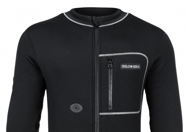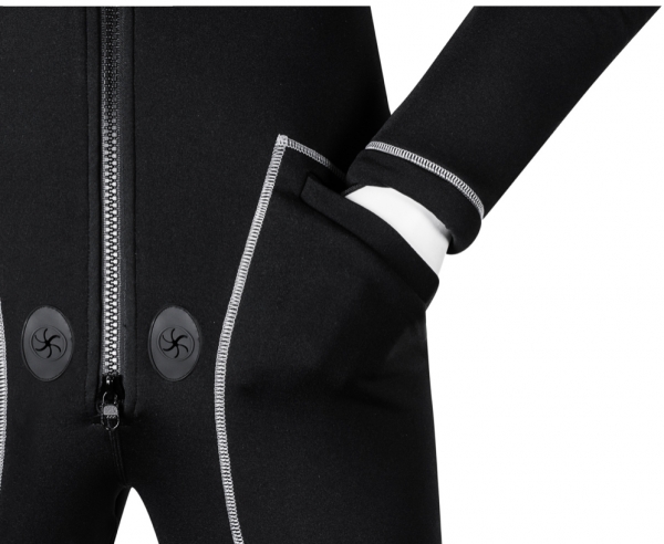 Die Polyester-Außenschicht in der “easy on-easy off” Ausführung ermöglicht das leichte An- und Ausziehen des Trockenanzugs (dry suit).